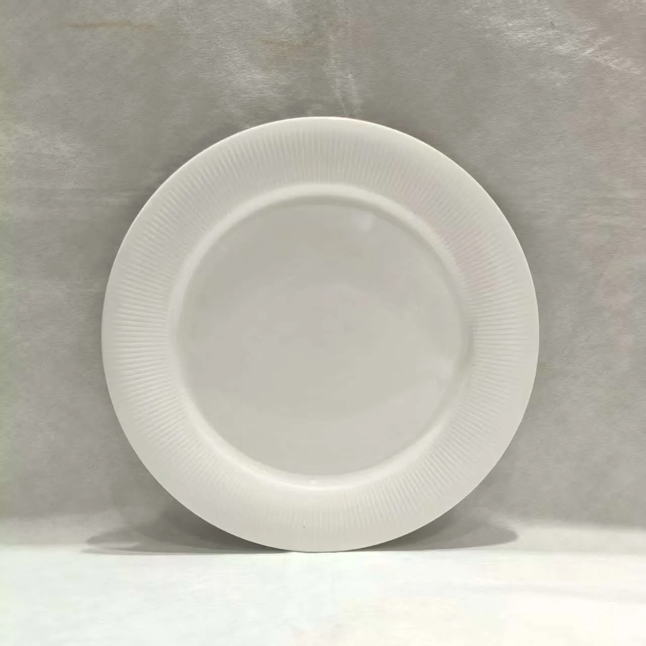 El plato plano de 12” de la Línea Aurora está fabricado en porcelana blanca de alta calidad, con un diseño de líneas finas que evocan un aura solar, aportando sofisticación y modernidad a la mesa. Su tamaño amplio lo hace perfecto para platos fuertes, presentaciones gourmet o platillos de gran porción, garantizando estilo y resistencia en cualquier ocasión.